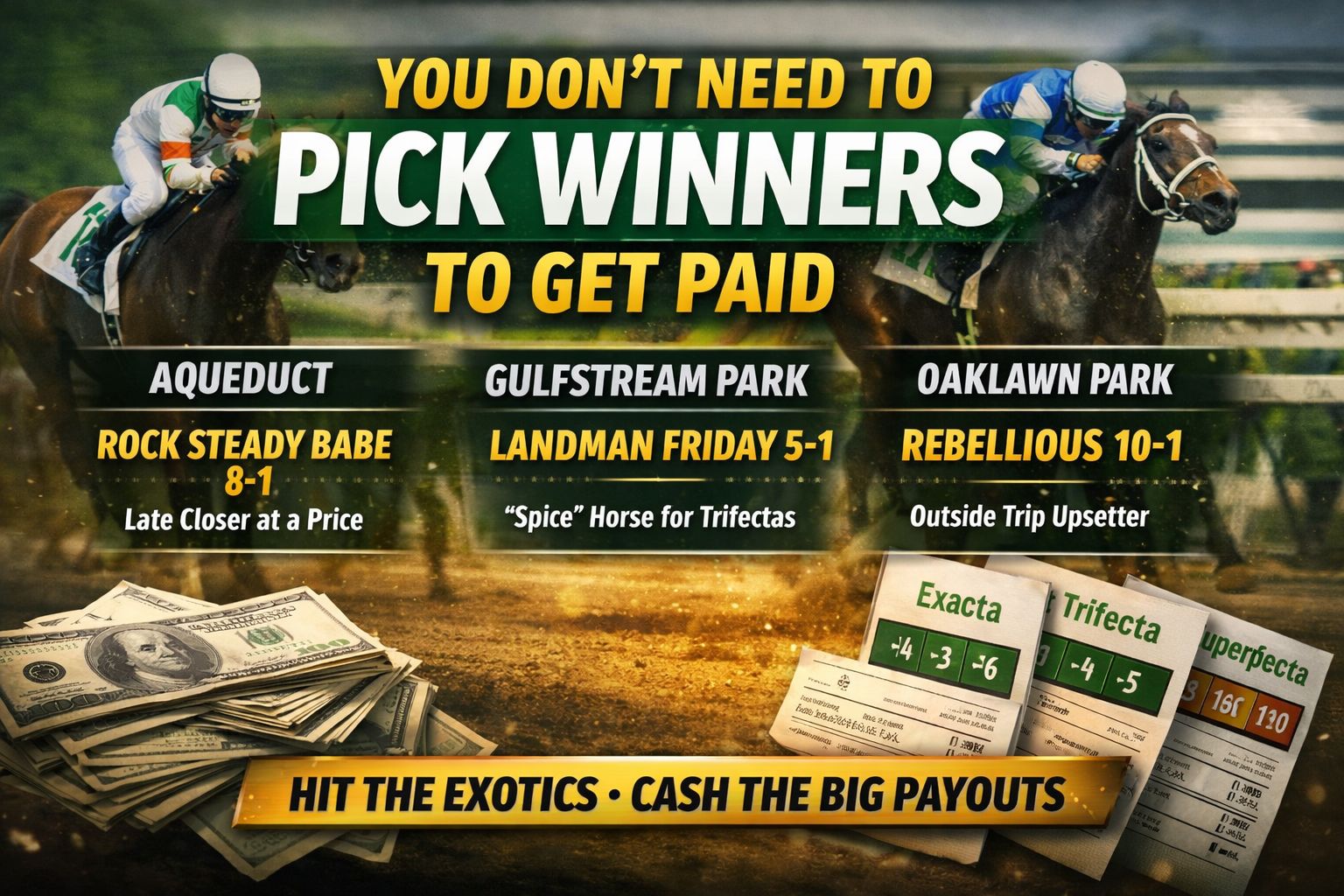 and lands in your Exacta or Trifecta at a price